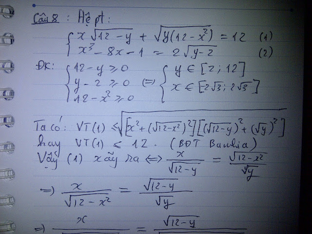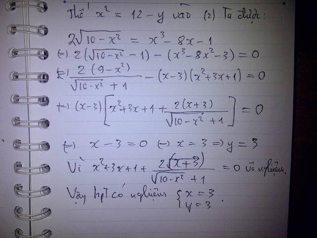 Thiết nghĩ còn có cách khác để giải câu hệ phương trình này, chẳng hạn một số bạn đặt ẩn phụ rồi đưa về phương trình bậc 6 khá cồng kềnh...